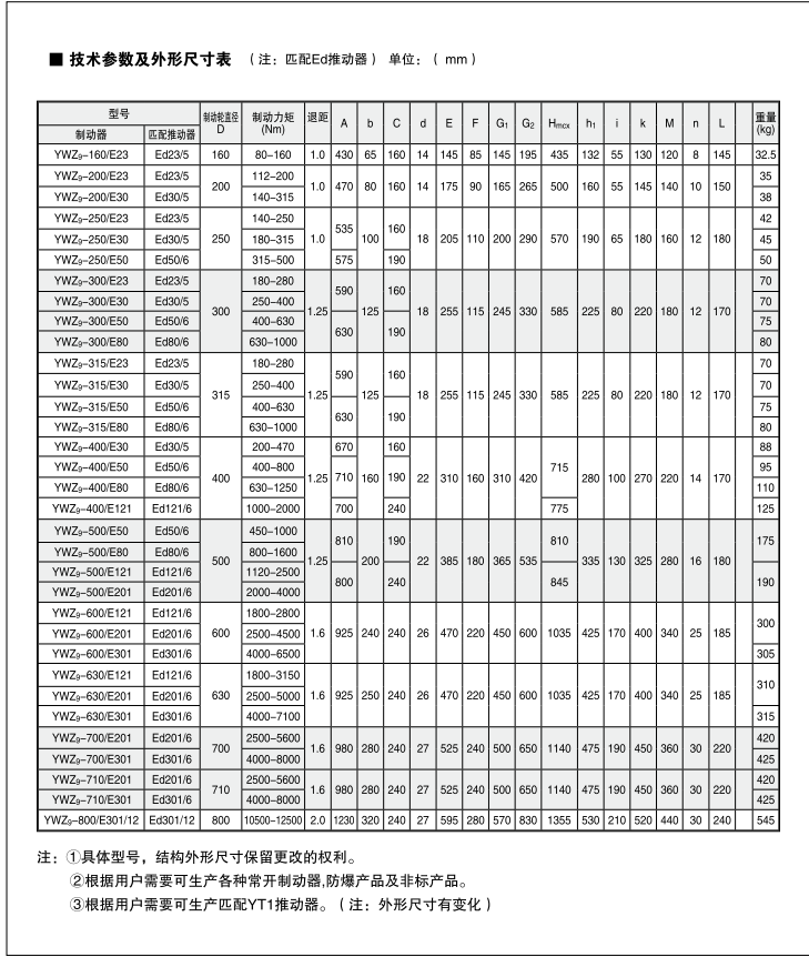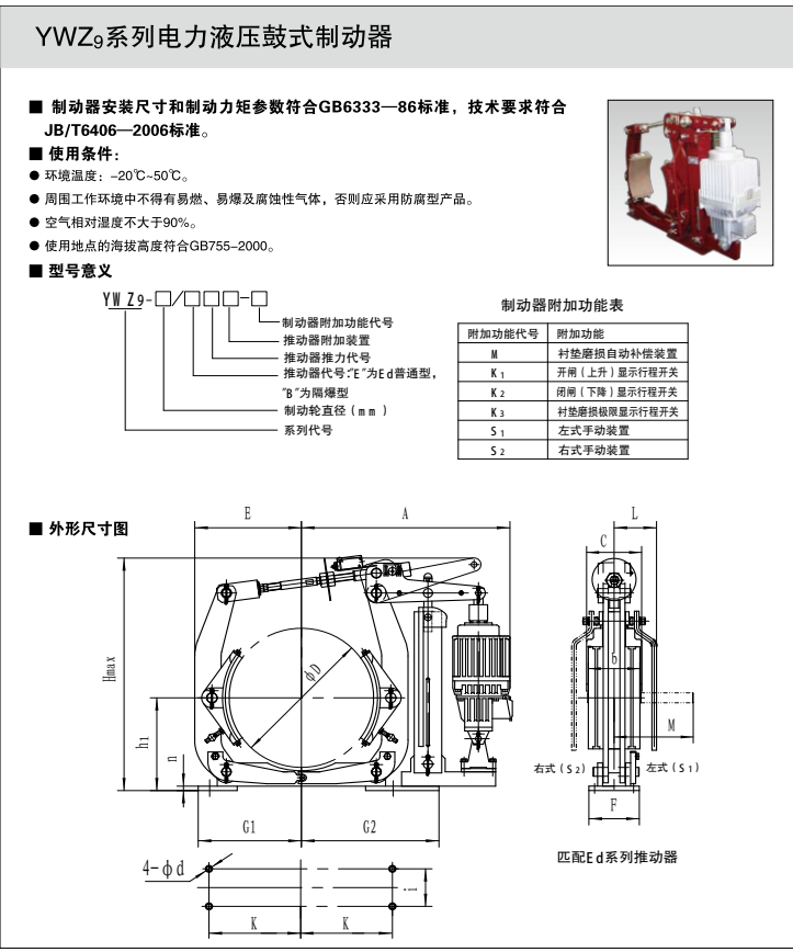 電力液壓制動(dòng)器是使機(jī)械中的運(yùn)動(dòng)件停止或減速的機(jī)械零件。俗稱剎車、閘。制動(dòng)器主要由制架、制動(dòng)件和操縱裝置等組成。有些制動(dòng)器還裝有制動(dòng)件間隙的自動(dòng)調(diào)整裝置。為了減小制動(dòng)力矩和結(jié)構(gòu)寸, 制動(dòng)器通常裝在設(shè)備的高速軸上,但對(duì)性要求較高的大型設(shè)備(如礦井提升機(jī)、電梯等)則應(yīng)裝在靠近設(shè)備工作部分的低速軸上。有些制動(dòng)器已標(biāo)準(zhǔn)化和系列化,工廠制造以供選用。