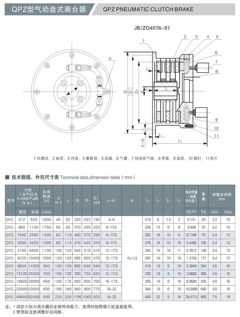 QPL型氣動(dòng)盤式離合器具有制動(dòng)和傳遞扭矩大、制動(dòng)離合迅速、結(jié)構(gòu)簡(jiǎn)單、工作可靠、維護(hù)方便等優(yōu)點(diǎn),廣泛應(yīng)用于冶金、起重、石油鉆采、造紙以及木材加工等行業(yè)中。型號(hào):QPZ1/QPZ2/QPZ3/QPZ4/QPZ5/QPZ6/QPZ7/QPZ8/QPZ9/