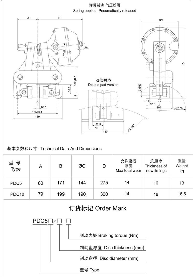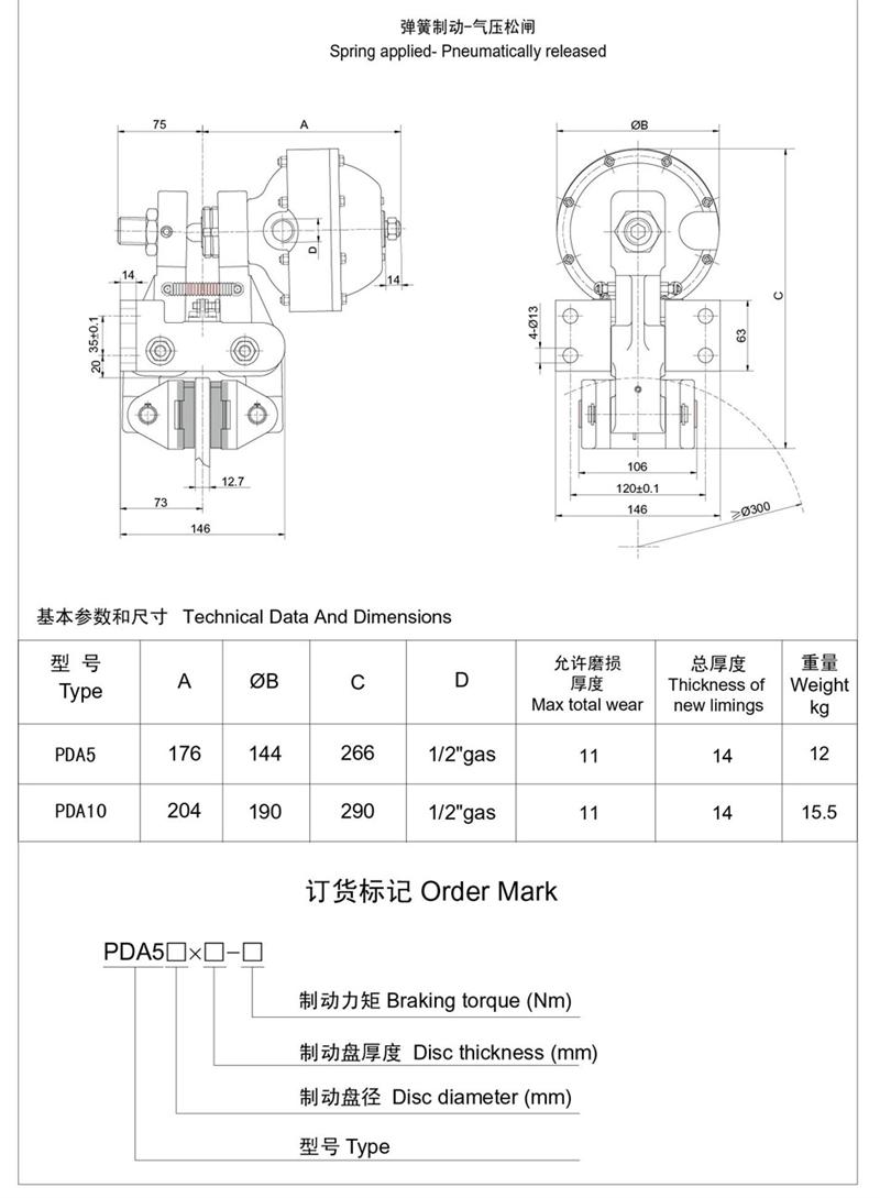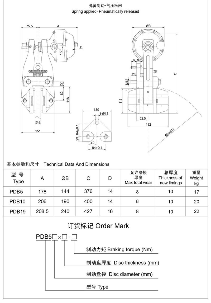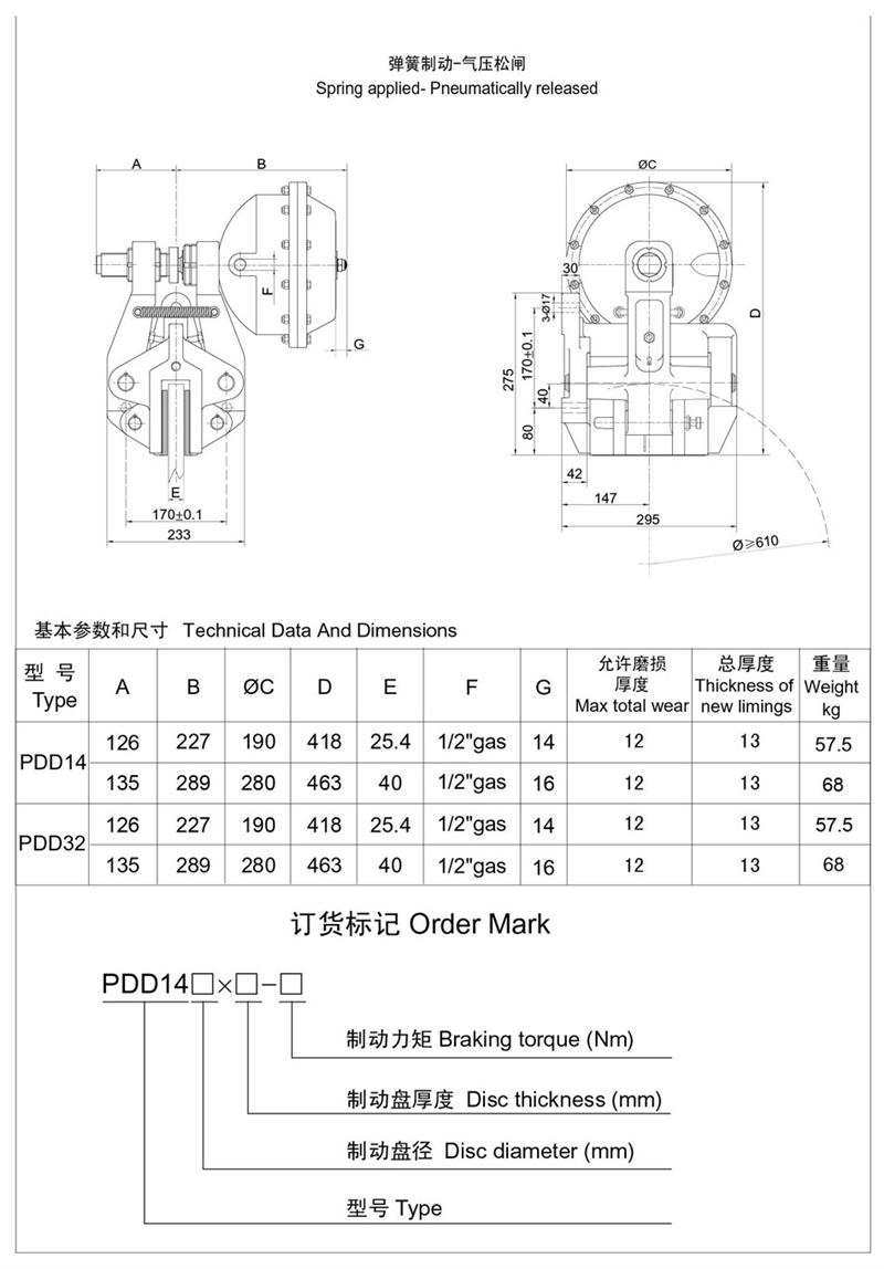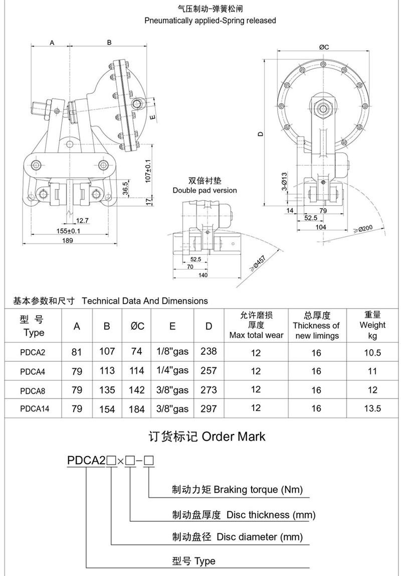 ■有常閉式設(shè)計(jì):彈簧制動(dòng),氣動(dòng)釋放(開(kāi)閘);有常開(kāi)式設(shè)計(jì):由氣壓制動(dòng),彈簧釋放,制動(dòng)力可隨氣壓的改變而變化,使用時(shí)可根據(jù)需要靈活改變。